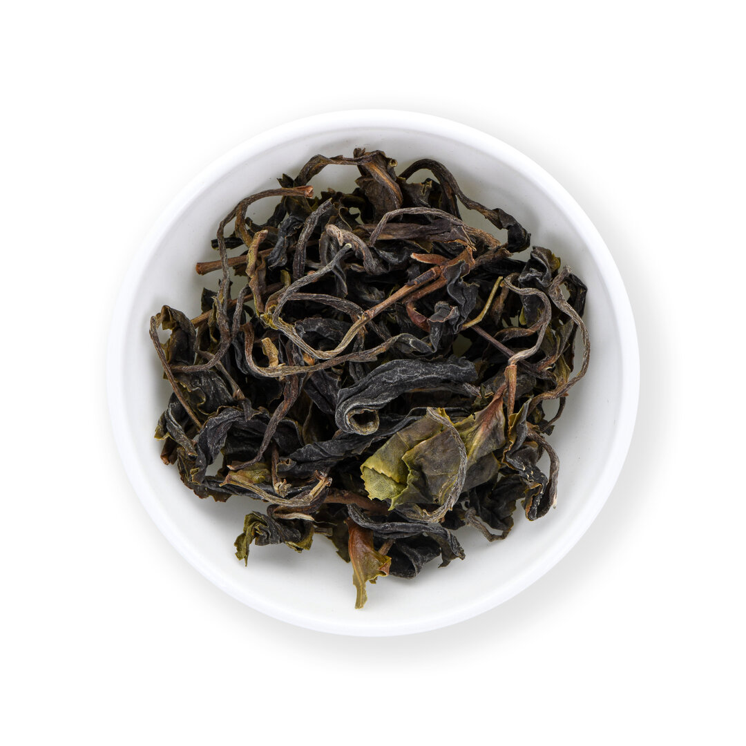 Famoso tè oolong Yan Cha ovvero coltivato sul terreno rocccioso dei mitici Monti Wuyi. Un tè wulong a lunga ossidazione, dalla foglia finemente arricciata. L' infusione si presenta di color giallo pallido, con sapore mito e fiorito.